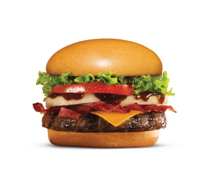 A full-flavored western, in a regular size offering! A mouth-watering, flame-grilled beef patty topped with crunchy turkey bacon, American cheese, fresh tomatoes, crisp lettuce, tangy pickles and fresh onions, served on a toasted sesame seed bun and flavored with creamy mayo,tangy BBQ sauce. Take your tastebuds out on a wild ride!